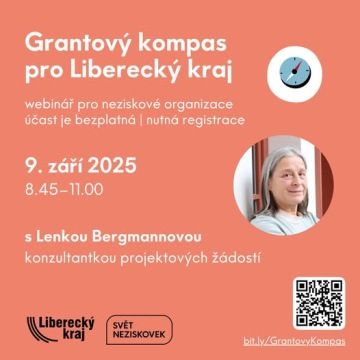 Pozvání na bezplatný online seminář Grantový kompas pro Liberecký kraj, určený pro neziskové organizace působící v našem kraji.